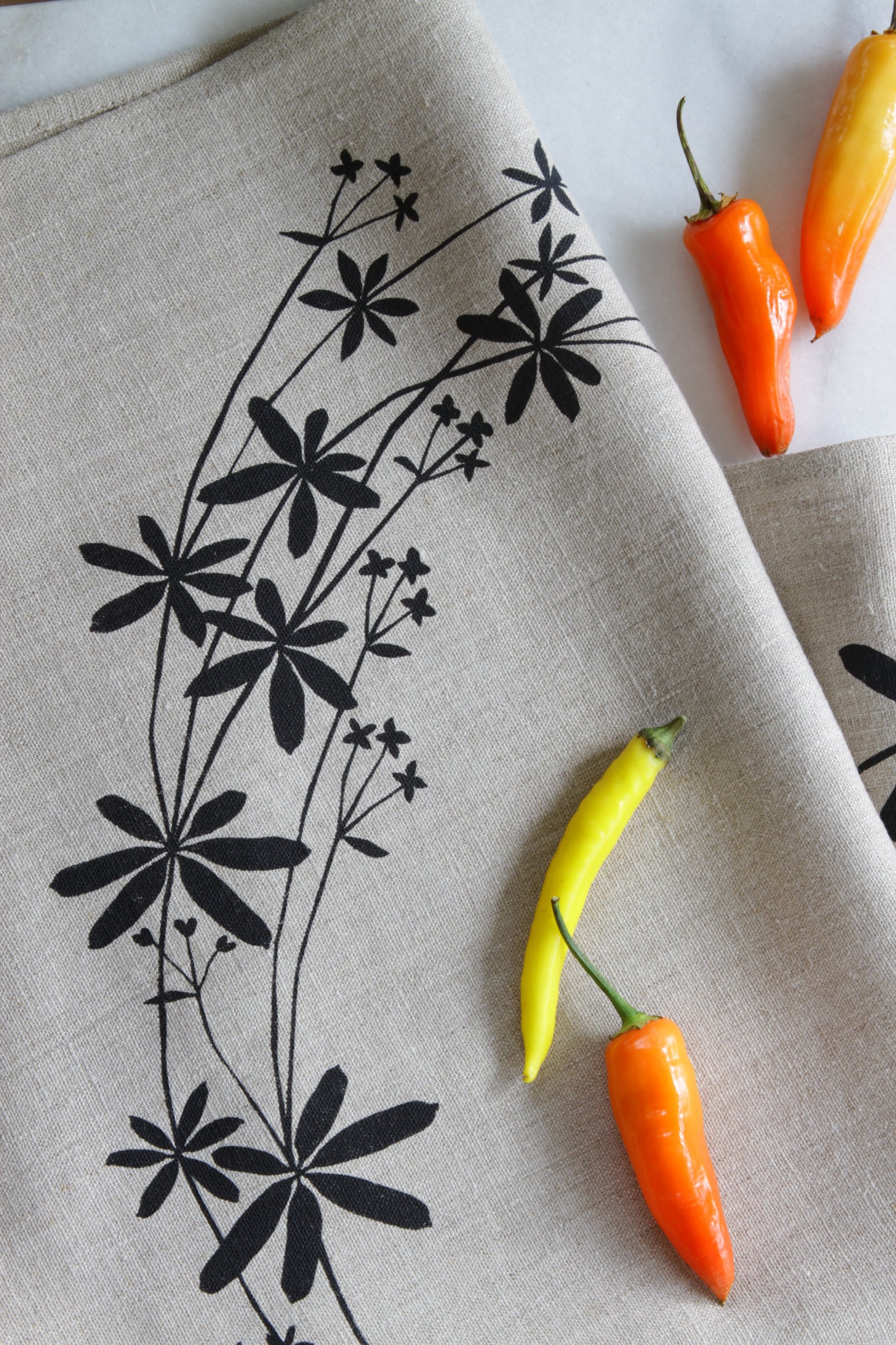 Bedstraw Kitchen Towel in Ink on Natural Linen