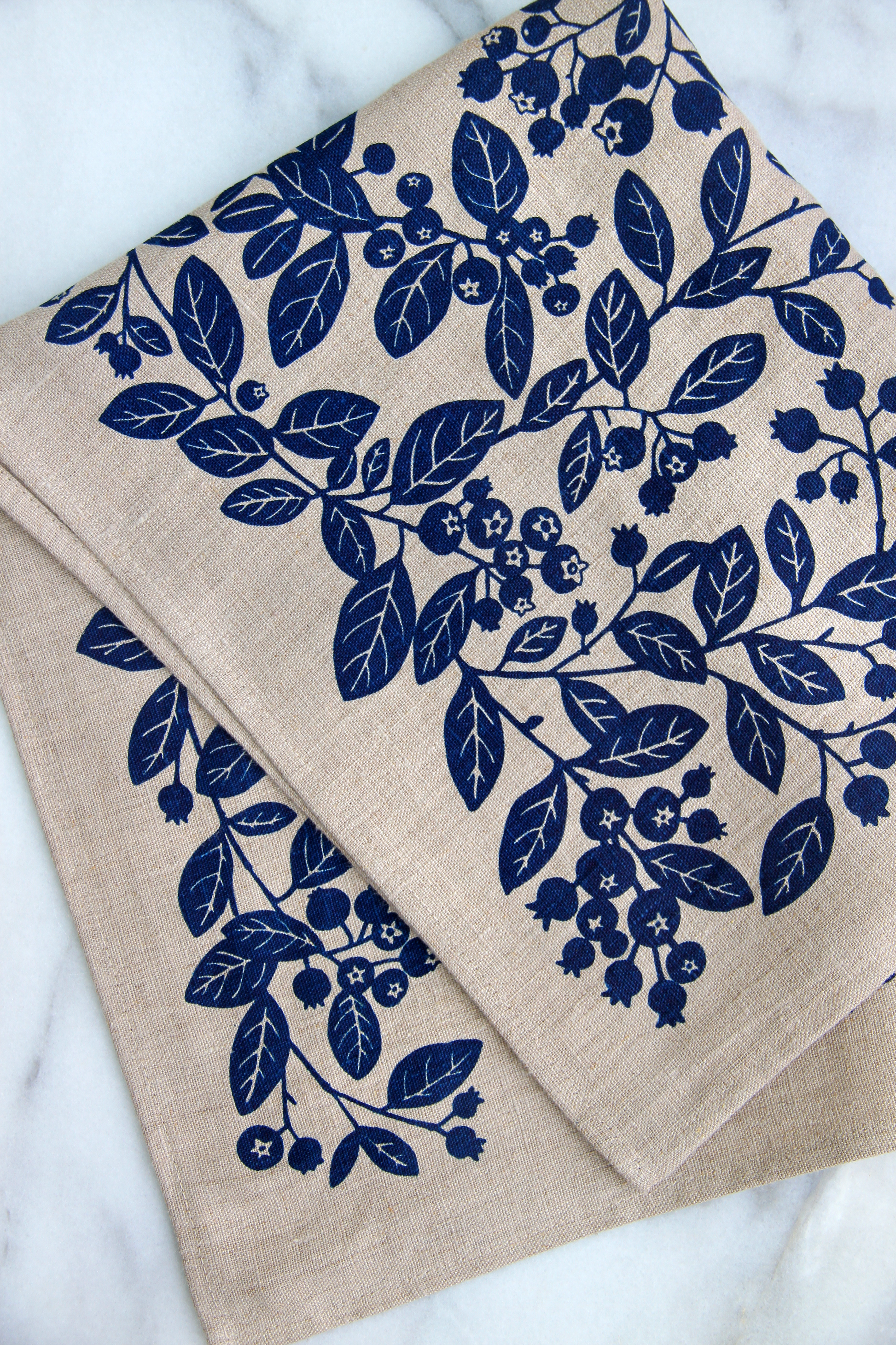 Blueberry Kitchen Towel in Blueberry on Natural Linen