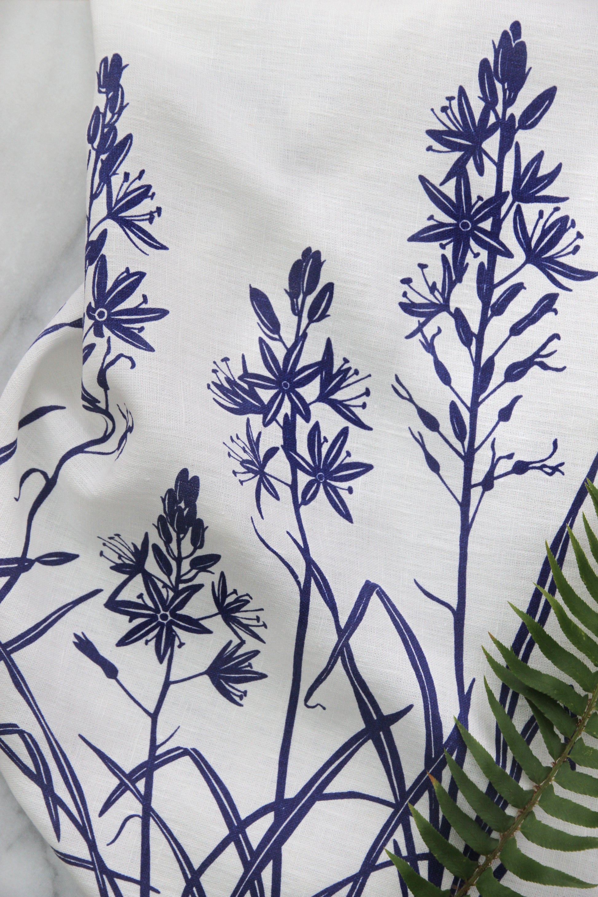 Camas Kitchen Towel in Purplish-Blue on White Linen