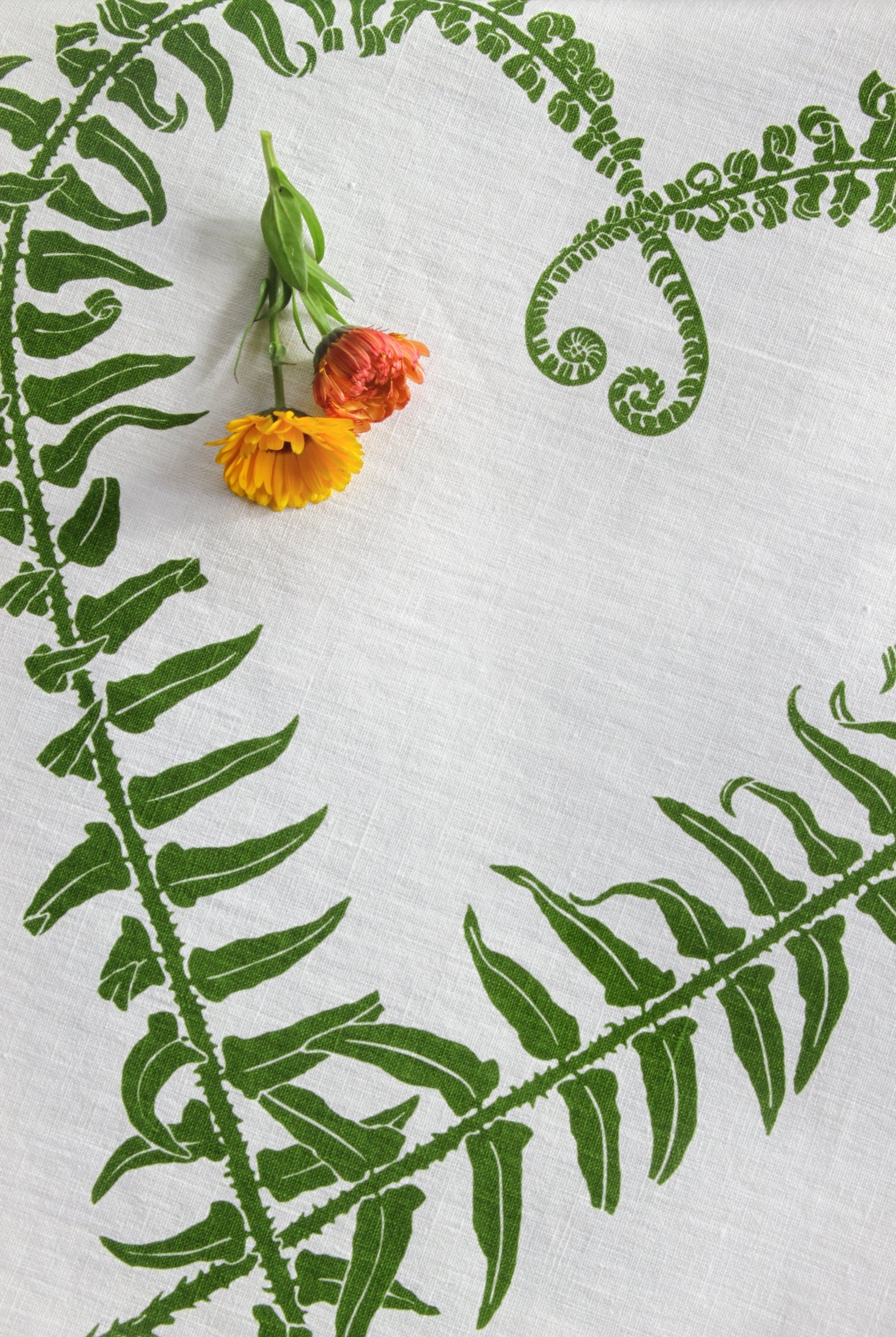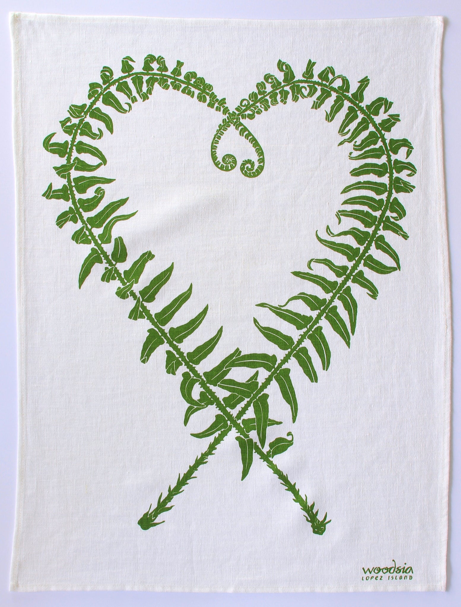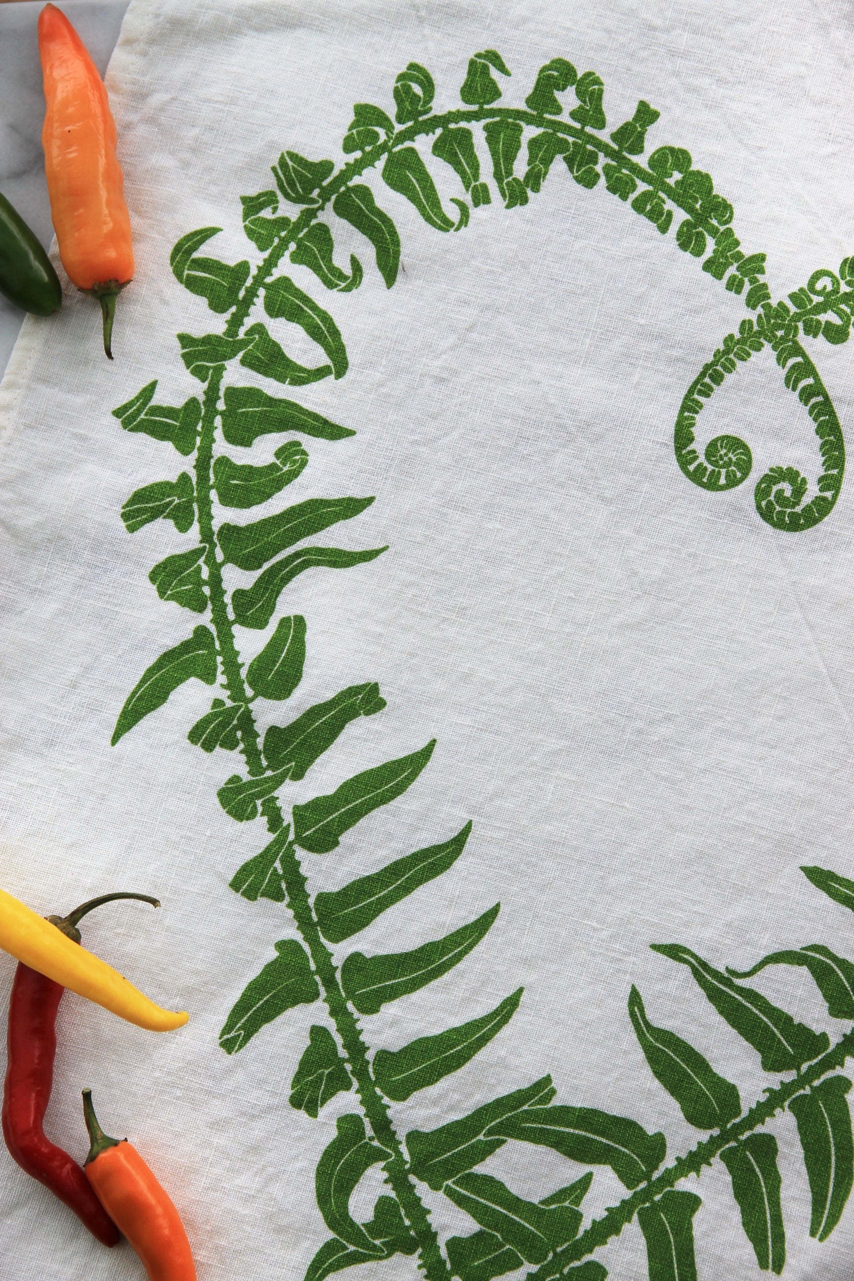 Sword Fern Kitchen Towel in Leaf on White Linen