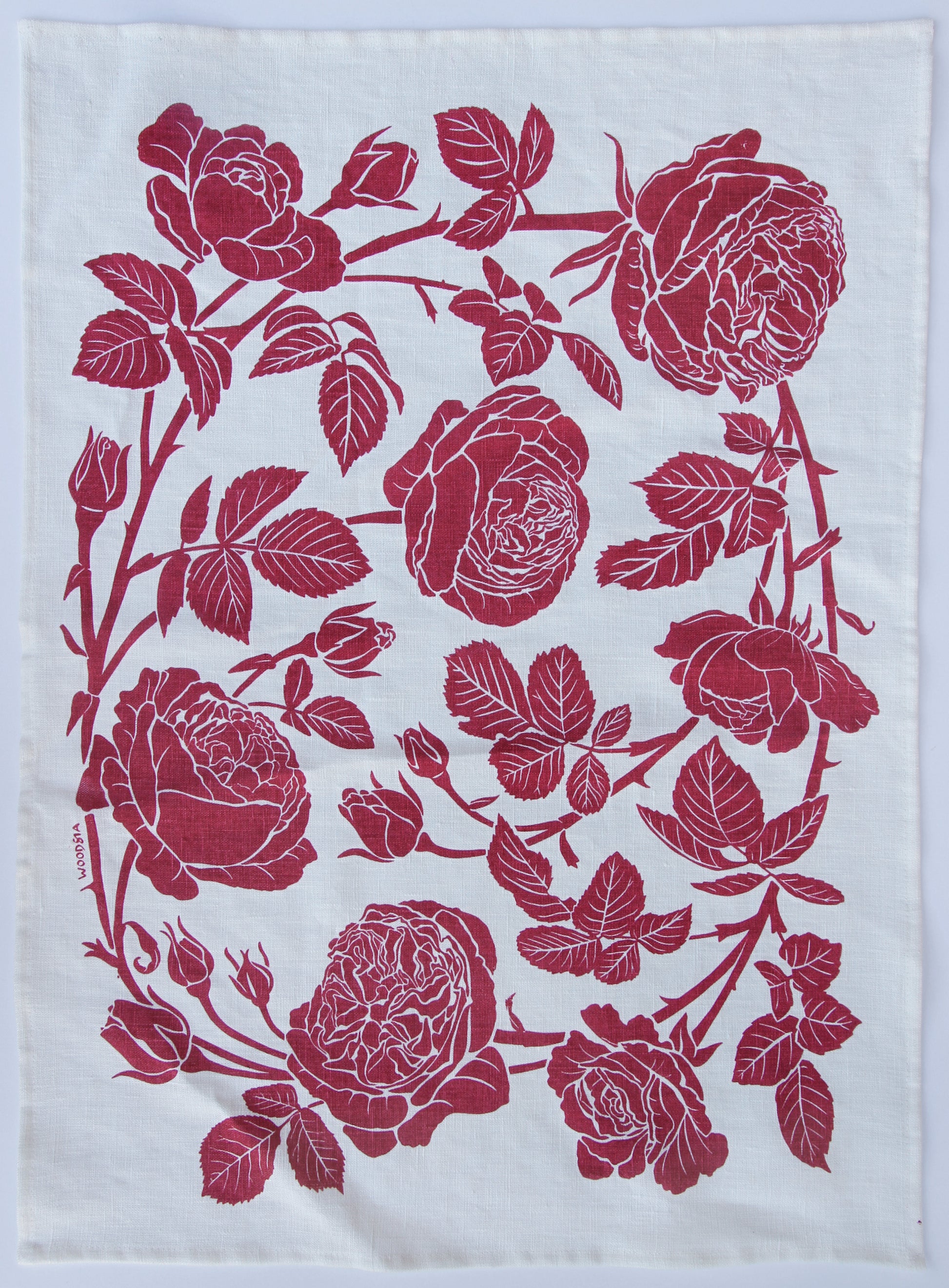 Garden Rose in Gentle Pink on White Linen