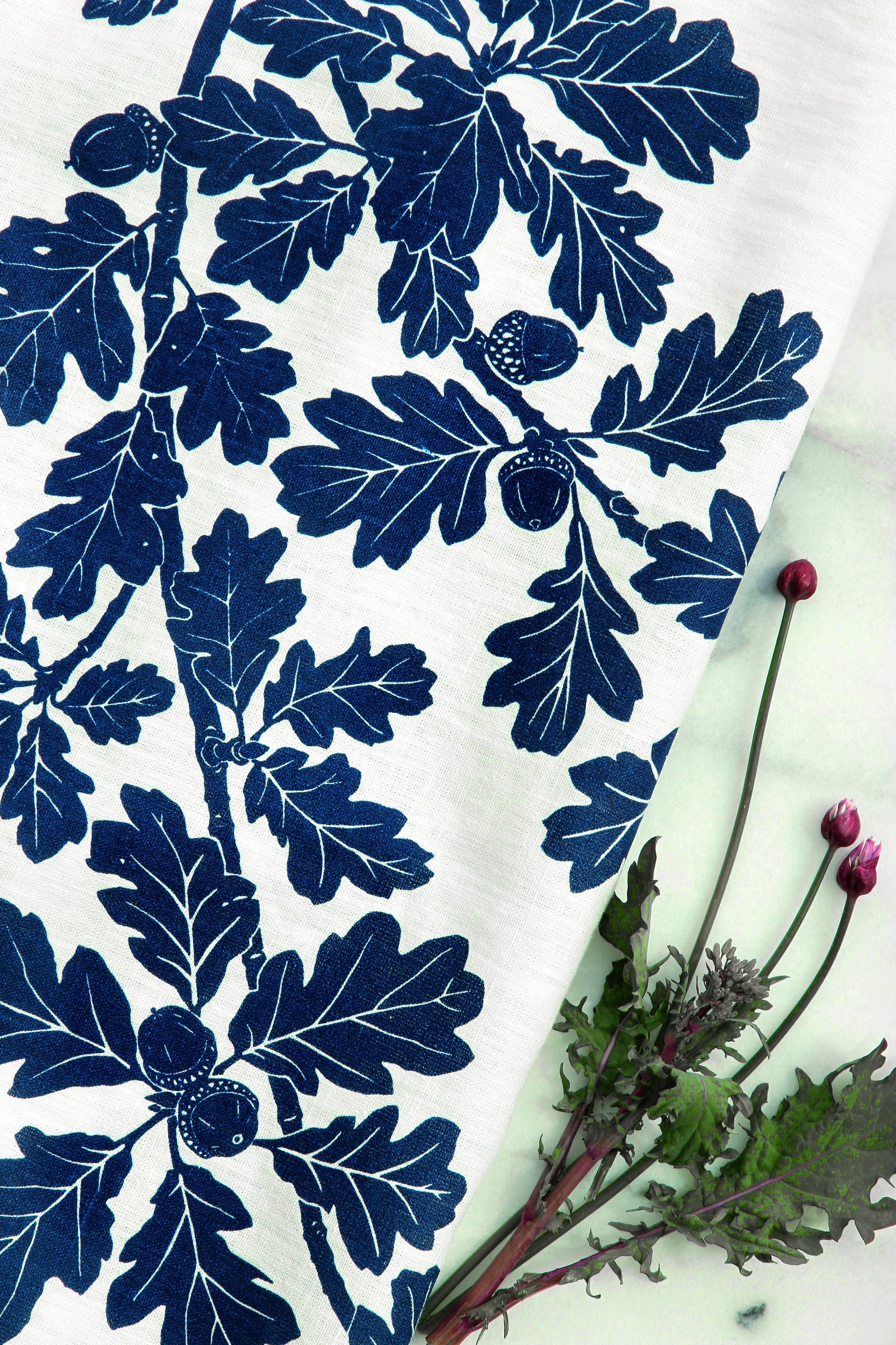 Garry Oak Kitchen Towel in Navy on White Linen
