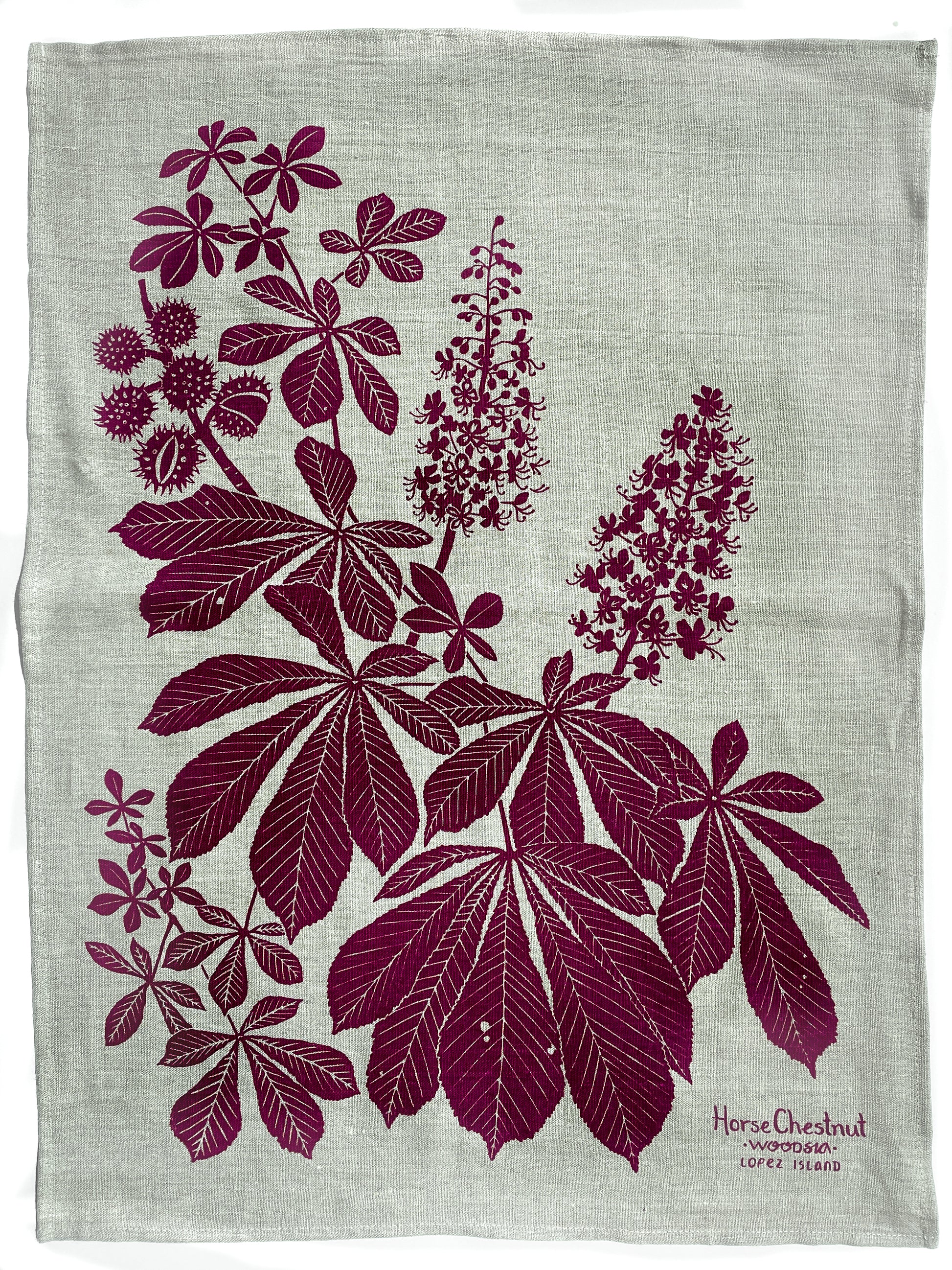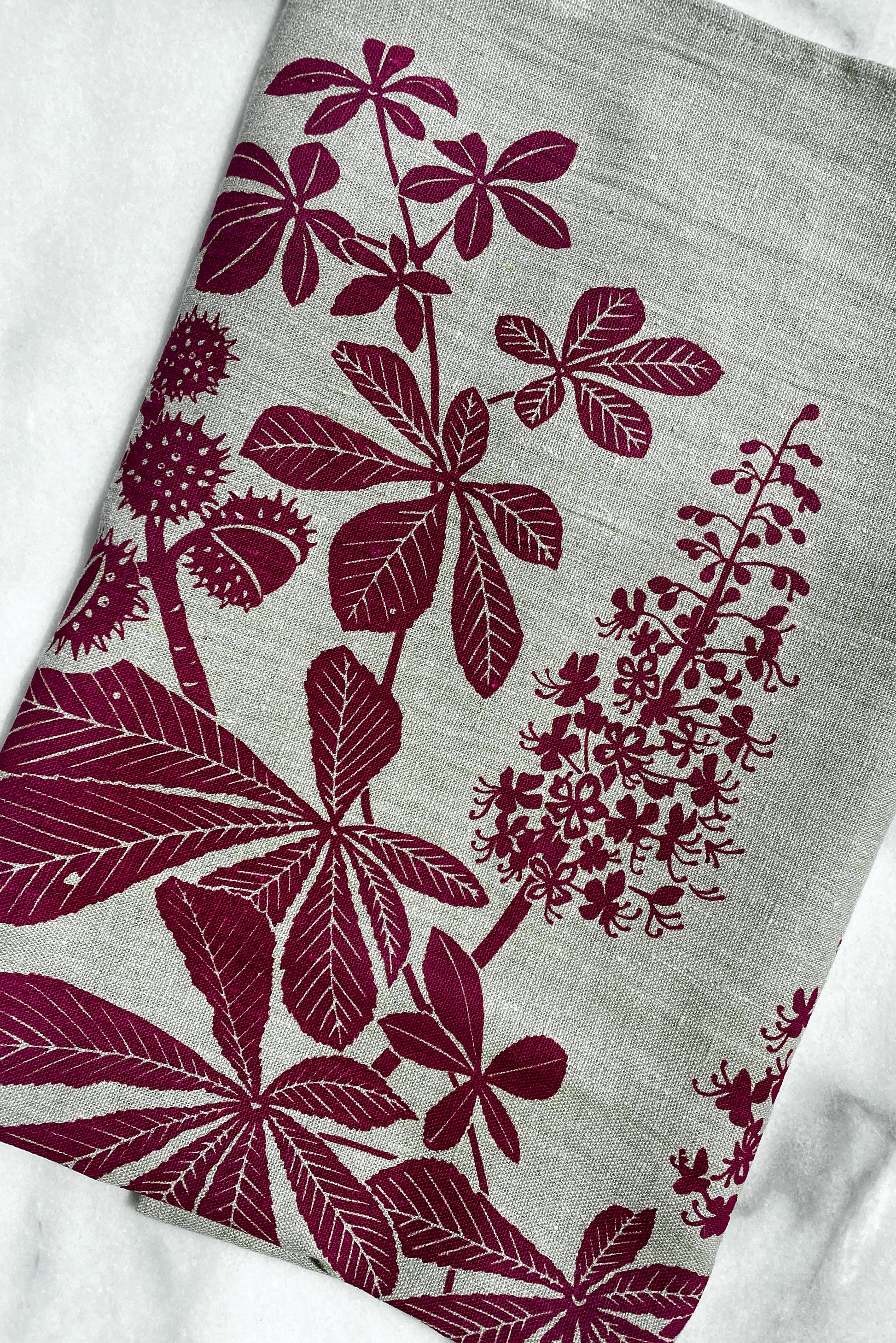 Horse Chestnut Kitchen Towel in Rainier Cherry Red on Natural