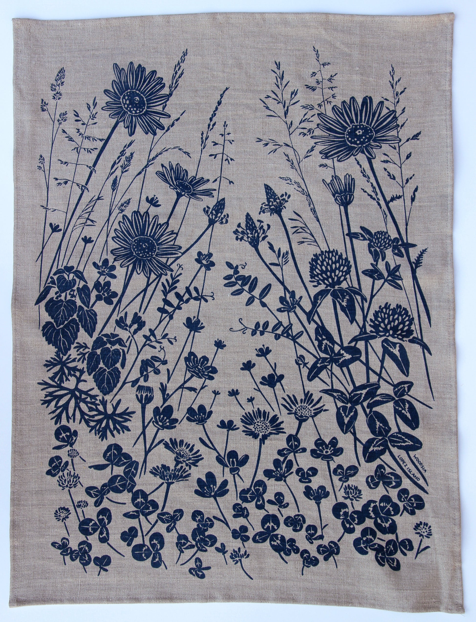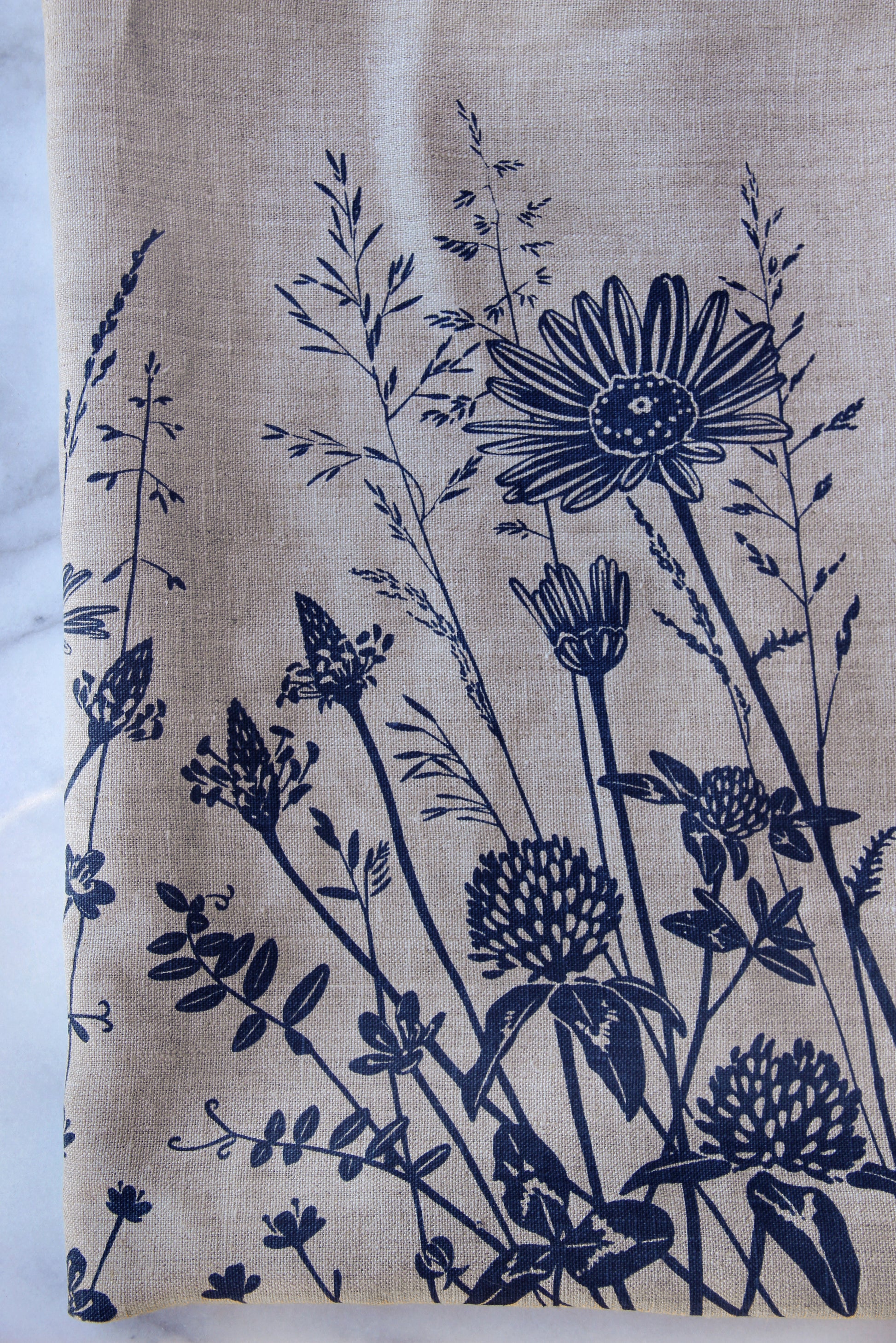 Springtime Wildflowers in Dusty Blue on Natural Linen