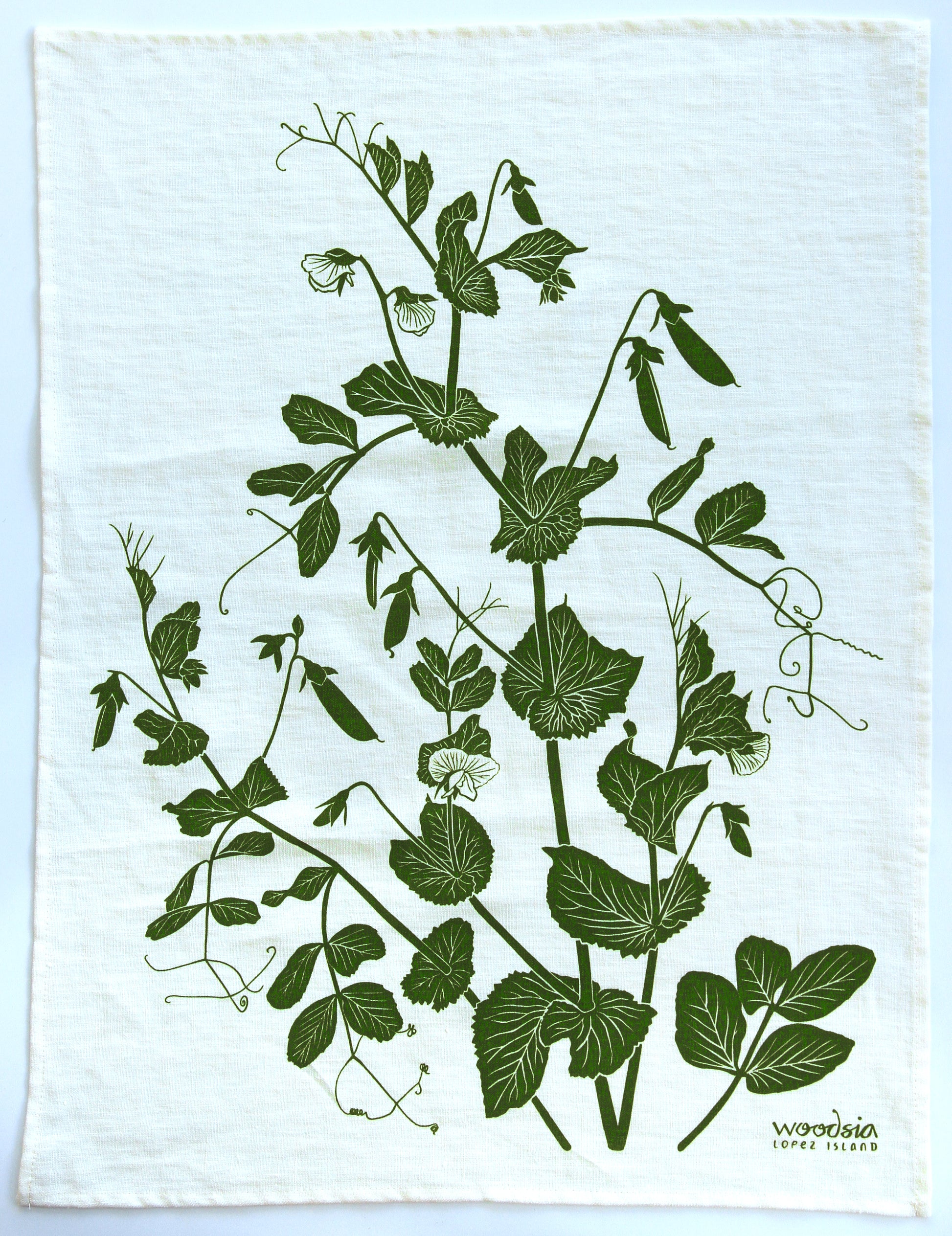 Snap Pea Kitchen Towel in Crisp Pea on White Linen