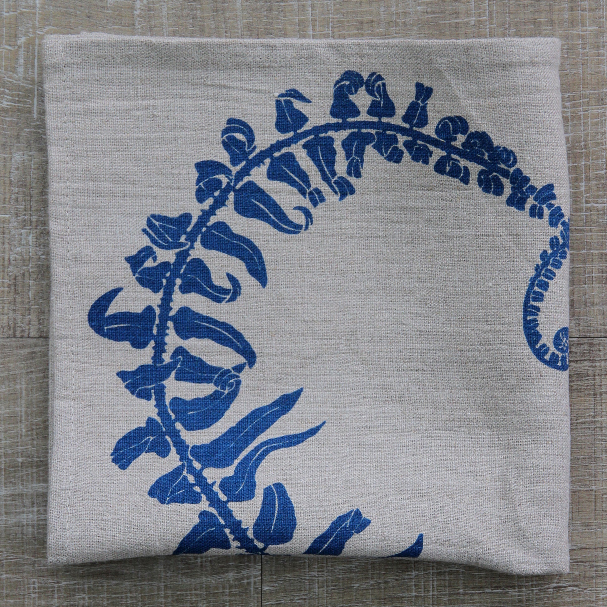 Sword Fern Heart Napkin in Clear Blue on Natural Flax Linen