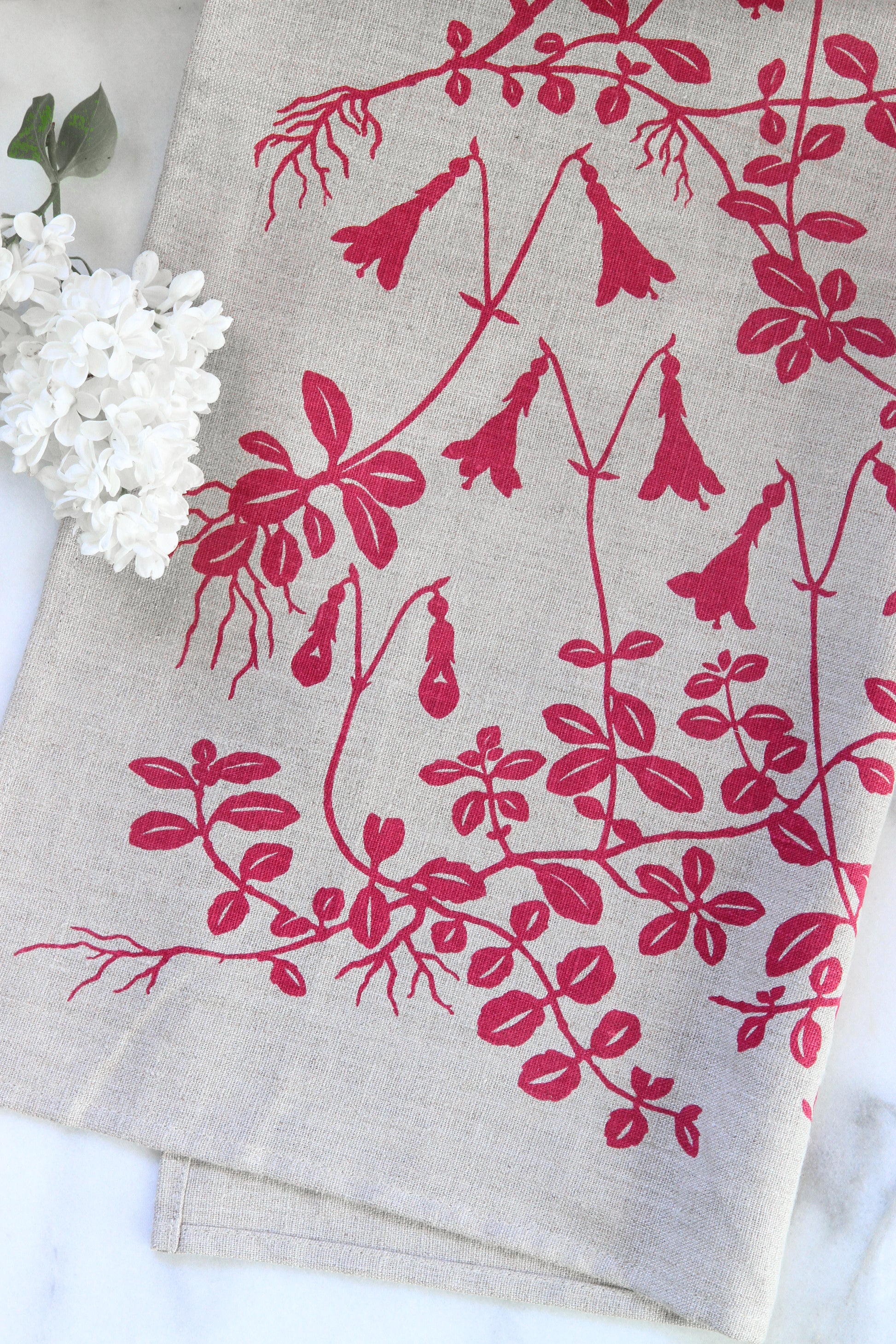 Twinflower Kitchen Towel in Peony Pink on Natural Linen