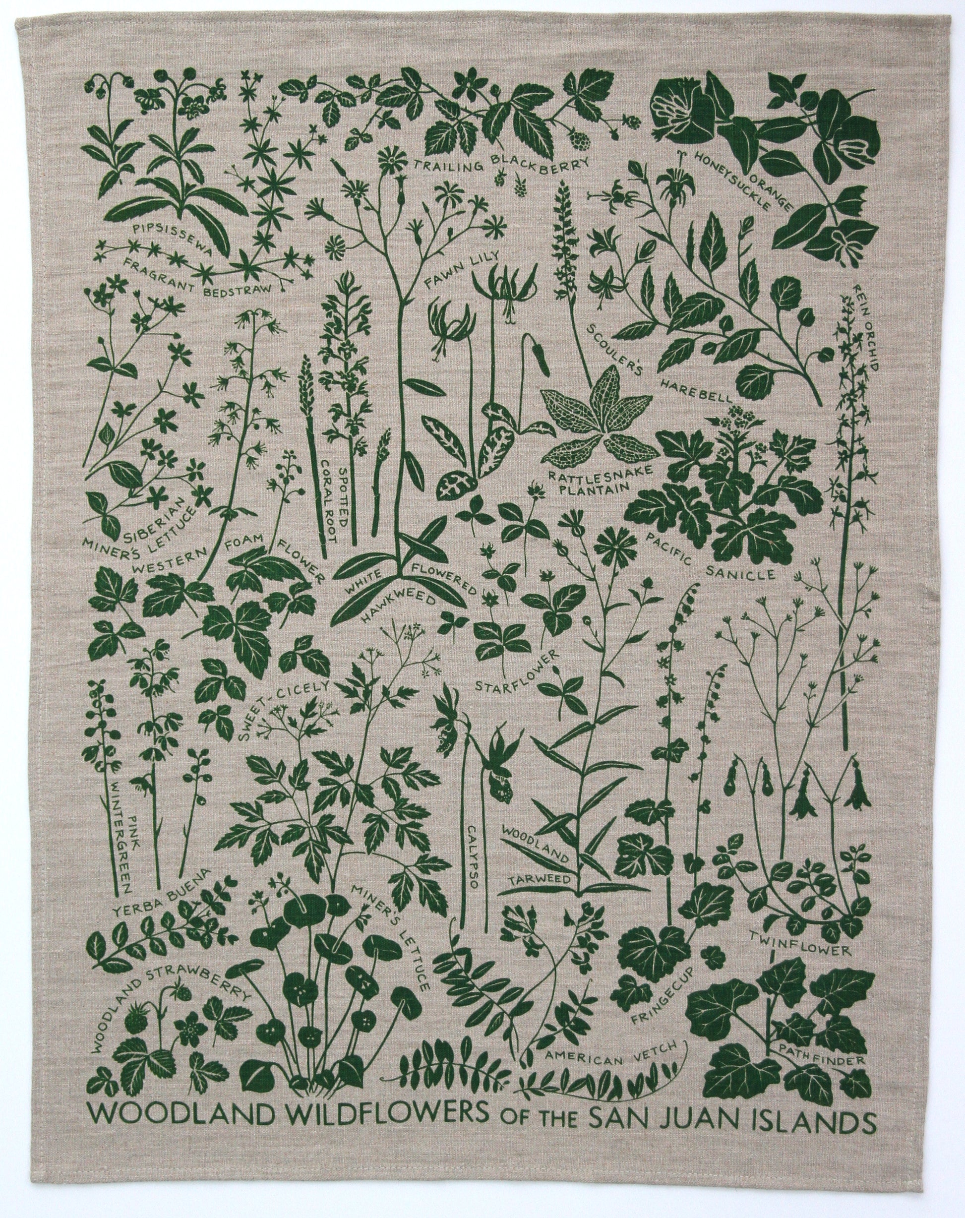 Woodland Wildflower Kitchen Towel in Hunter on Natural Linen